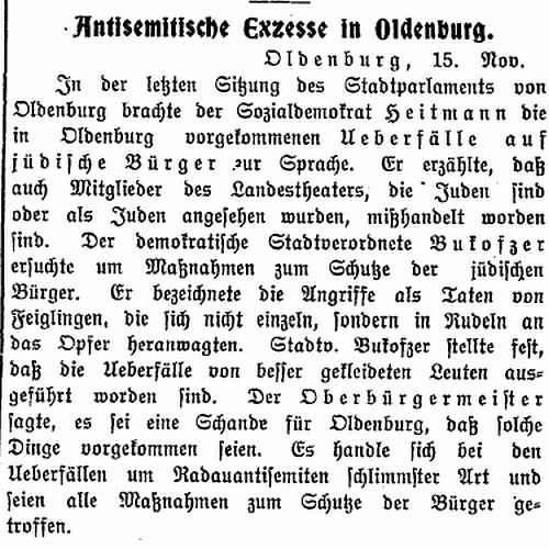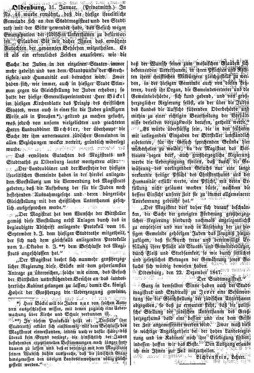 Beiträgen zur jüdischen Geschichte in Oldenburg wurden in jüdischen Periodika