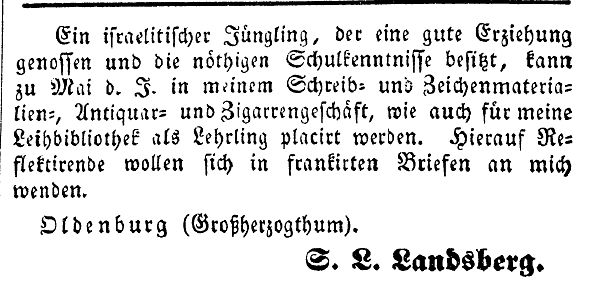 Oldenburg (Großherzogtum). S. L. Landsberg."