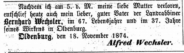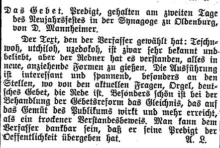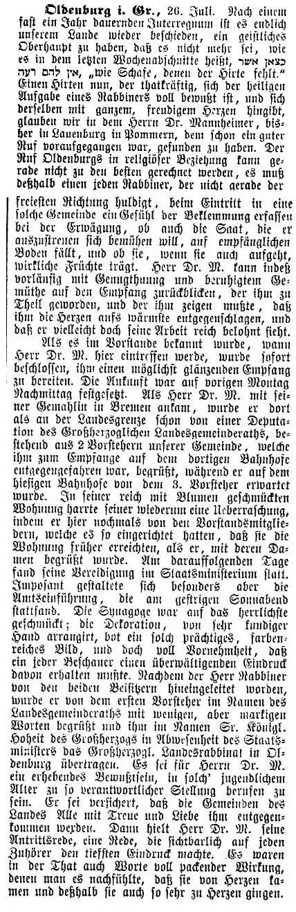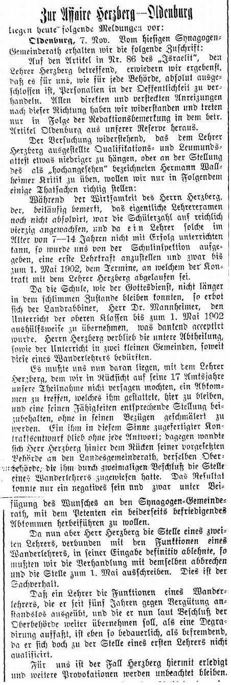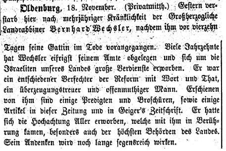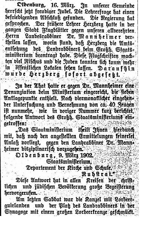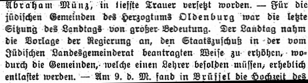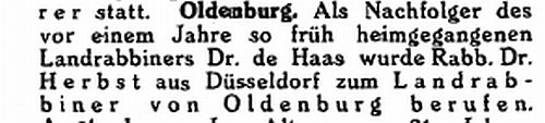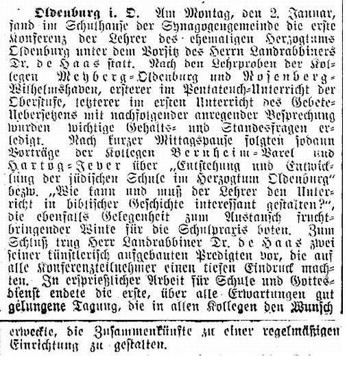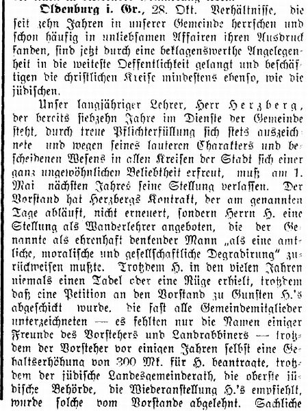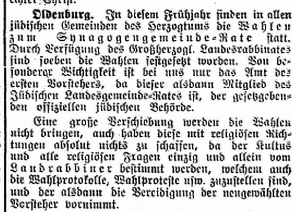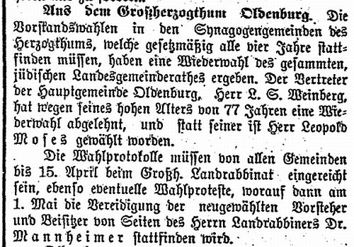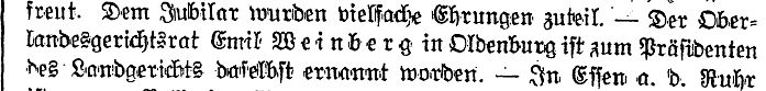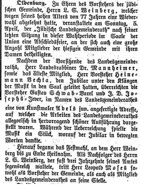 1903: "Oldenburg. Zu Ehren des Vorstehers der jüdischen