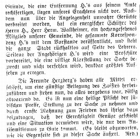 Artikel in der "Allgemeinen Zeitung des Judentums" vom 1. Januar