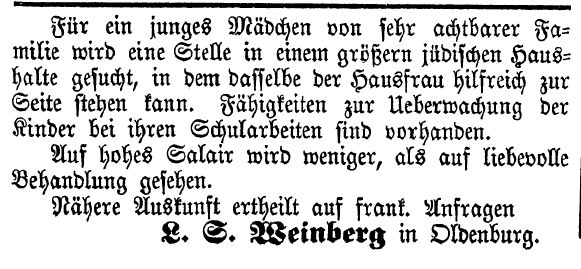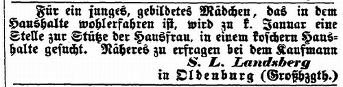 1870: "Oldenburg. Ein gewandtes junges Mädchen für