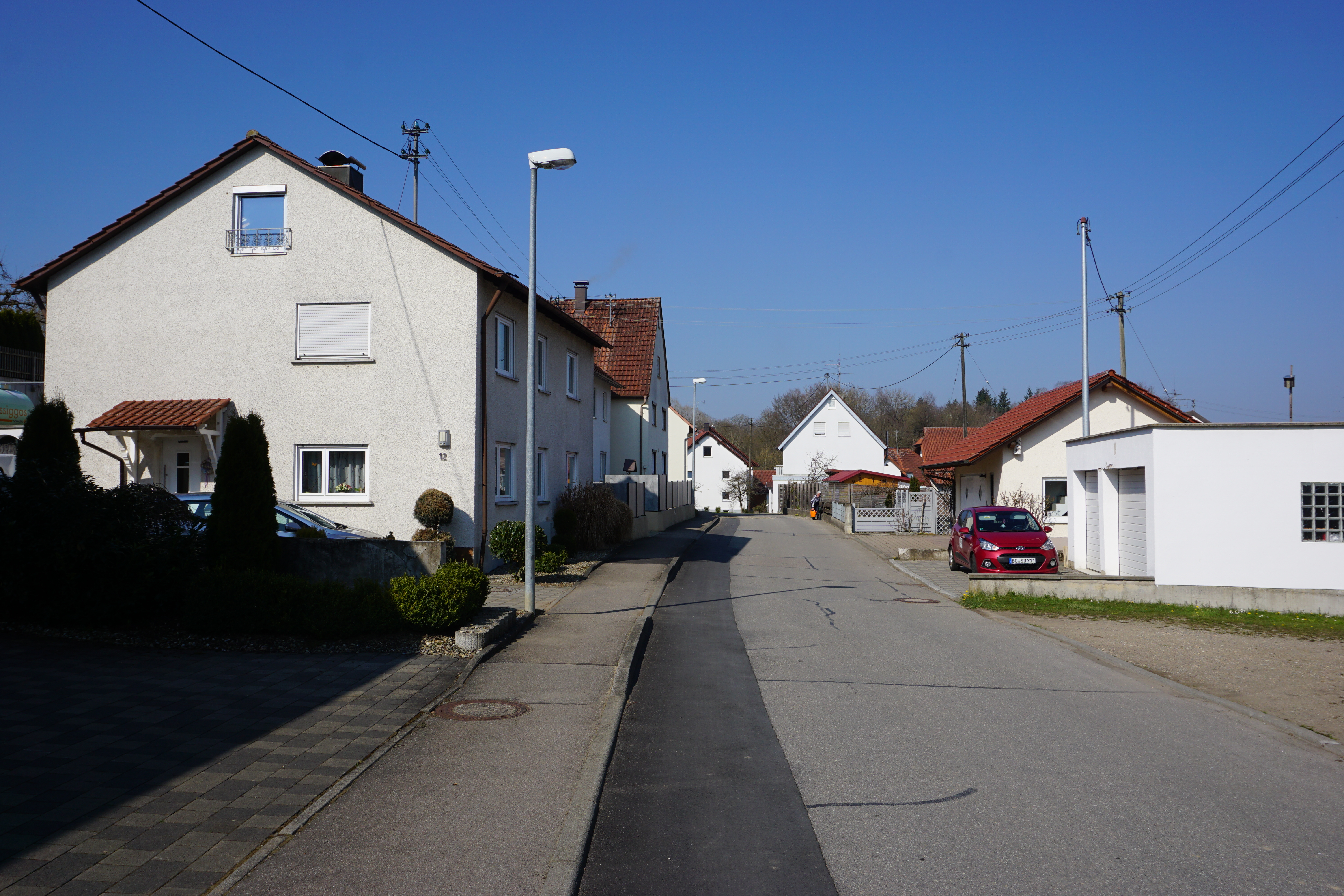 Besuch in der Weiherstraße in Orsenhausen. Vorne, an der Abbiegung
