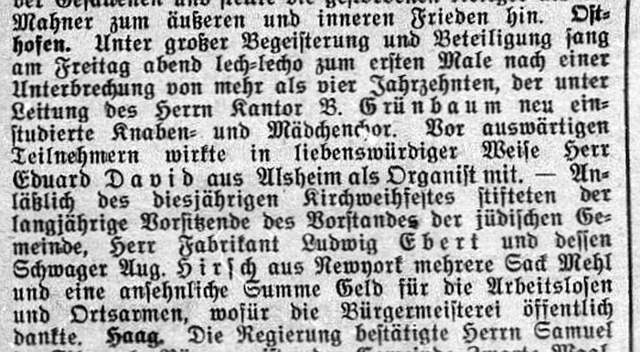 Um 1925, als zur jüdischen Gemeinde in Osthofen noch 89 Personen gehörten (2,0 %