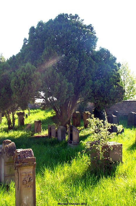 inzwischen unmittelbar am Ortsrand. Etwa 200 Grabsteine sind erhalten. Der