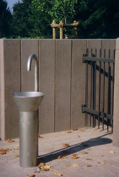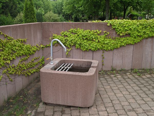 Steine bezeugen, dass Angehörige da waren. Ein Wasserbecken am Tor steht für