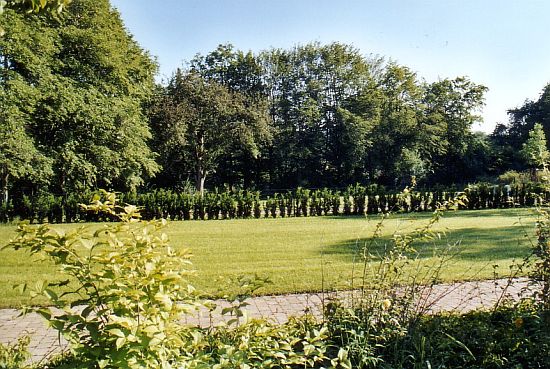 nach Israel ausgerichtet. Efeu rankt sich statt Blumen an den Wegen. Kleine