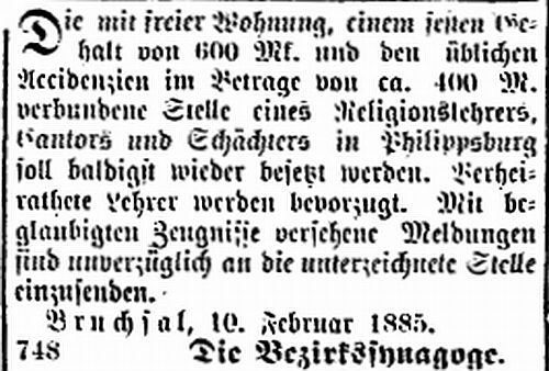 Zur jüdischen Gemeinde in Philippsburg gehörten seit 1895 auch die in Oberhausen