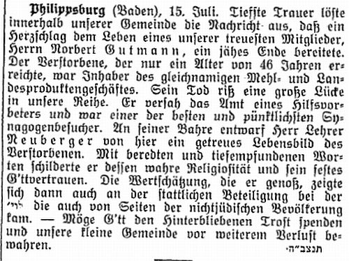 Neuburger (geb. 23.5.1897 in Philippsburg, gef. 27.3.1918). Ihre Namen wurden nachträglich 1985 auf dem