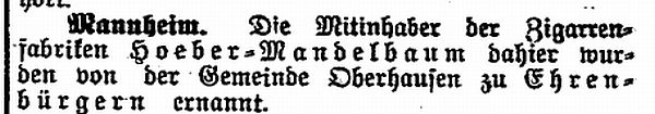 Personen gab es in Oberhausen die Zigarrenfabrik Hoeber-Mandelbaum (die in