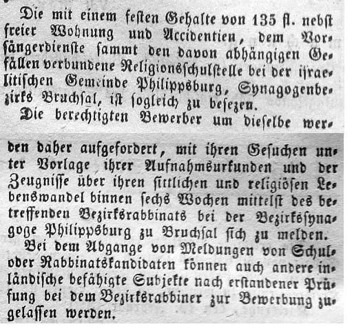 Lehrer, Vorbeter und Schochet der jüdischen Gemeinde tätig war. 1827 wurde die