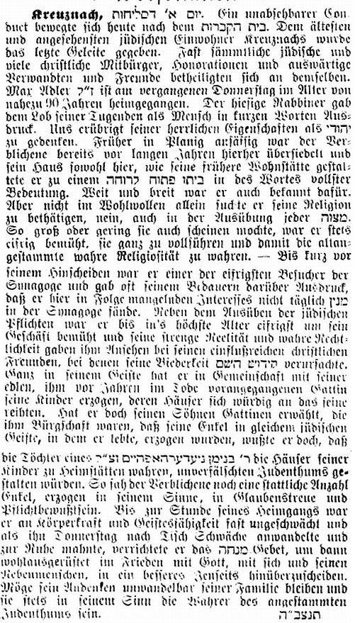 in der Zeitschrift "Der Israelit" vom 3. September 1896: "Kreuznach,
