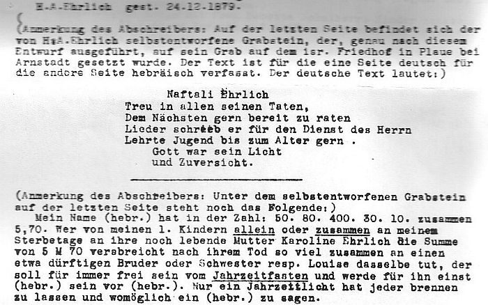 für Hermann (Naftali) Ehrlich mit der von ihm selbst bestimmten