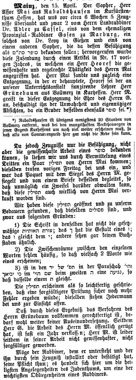 Toraschreiber R. Mosche Mai in Raboldshausen; gestorben in