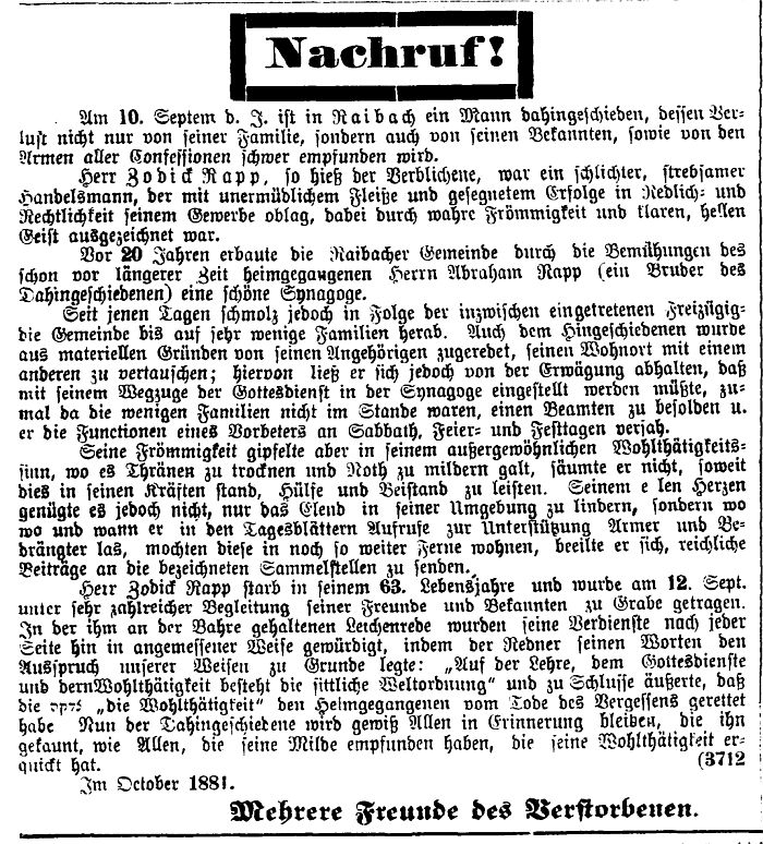 andere Orte ab. Der letzte jüdische Einwohner Raibachs war vermutlich Zodeck