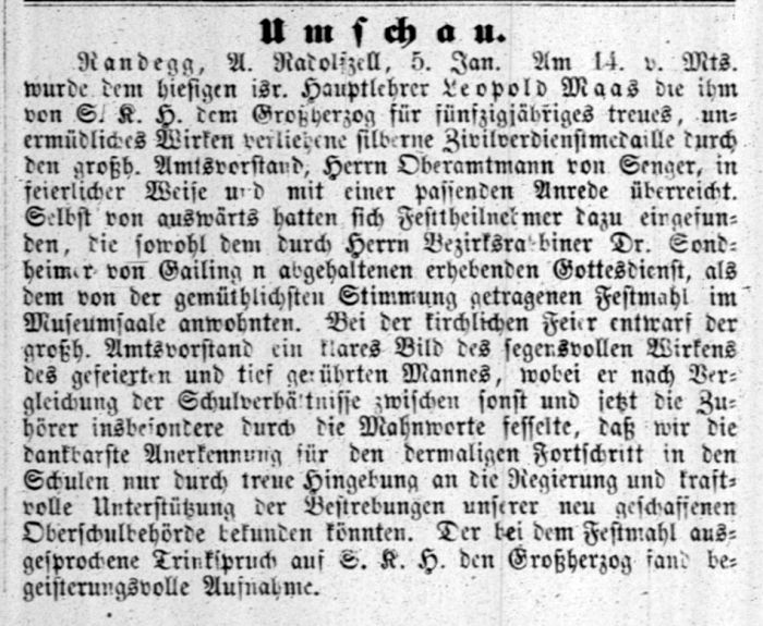 Beiträgen zur jüdischen Geschichte in Randegg wurden in jüdischen Periodika