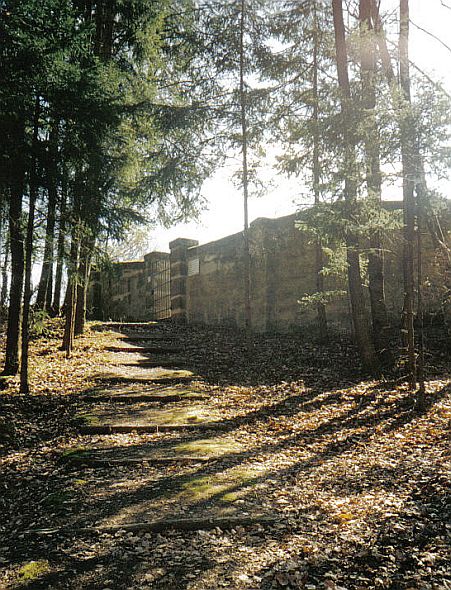 Der Friedhof wurde von einer massiven Steinmauer umgeben, die nach 1945