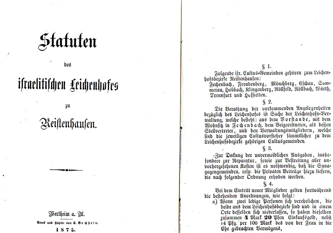"Statuten des israelitischen Leichenhofes zu Reistenhausen" von