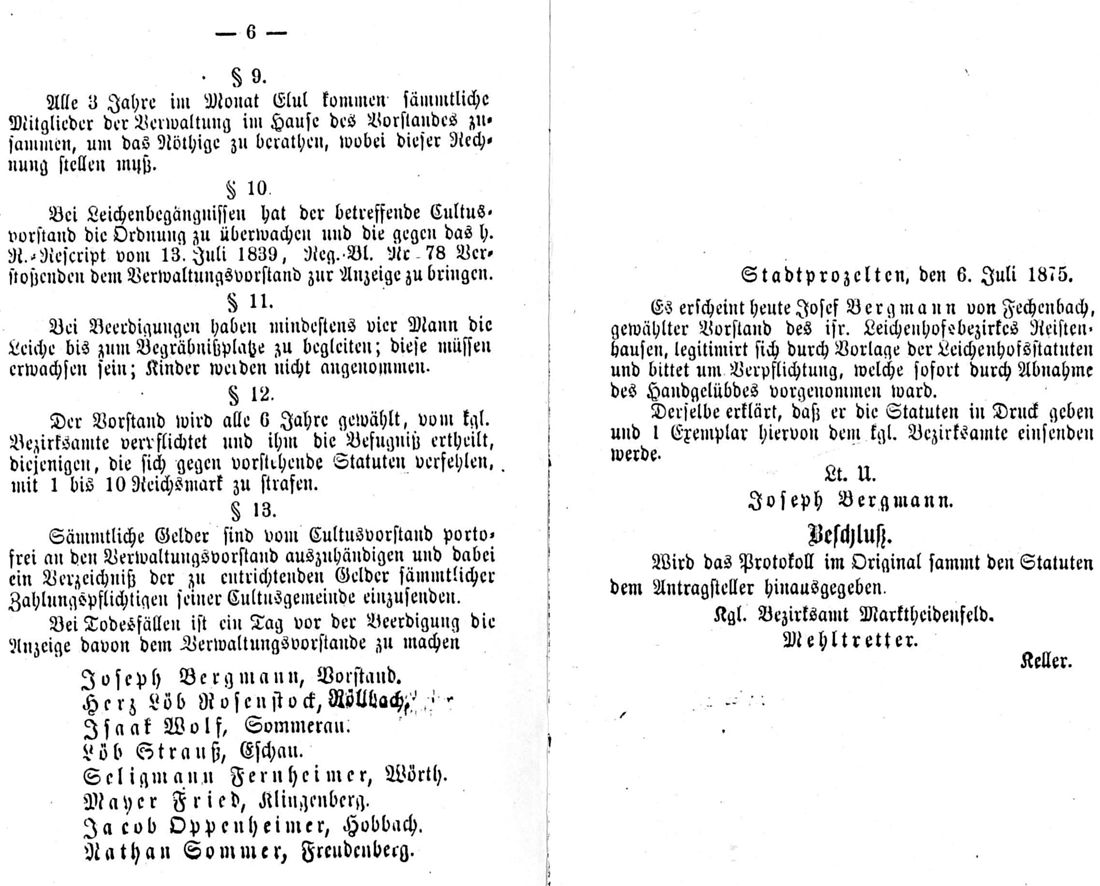1875 (siehe unten) gehörten zum Friedhofsbezirk die israelitischen Kultusgemeinden von "Fechenbach,