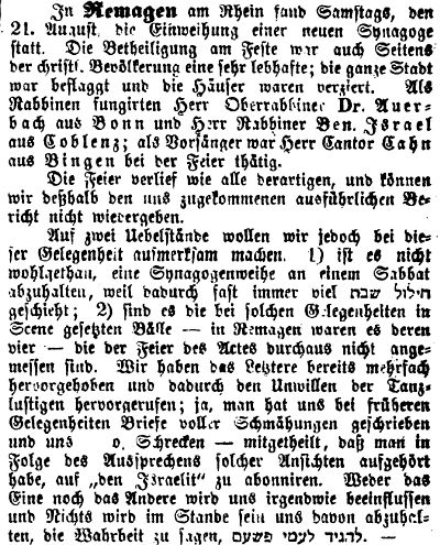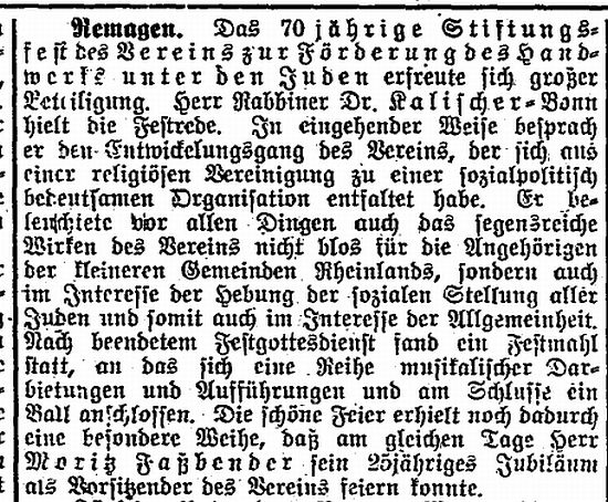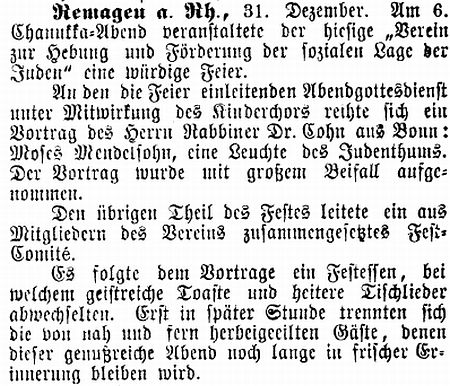 und Niederbreisig in Sinzig (vgl. Bericht unten zur Purimfeier 1893). 1908 war für