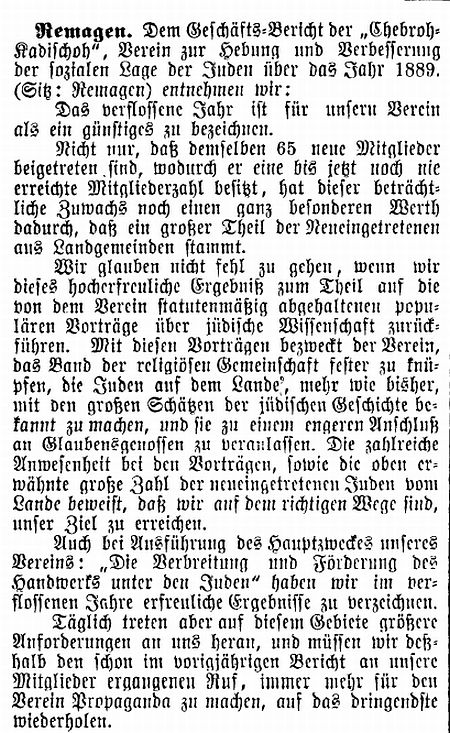 teaching trades to needy children and numbering 240 members from Remagen and
