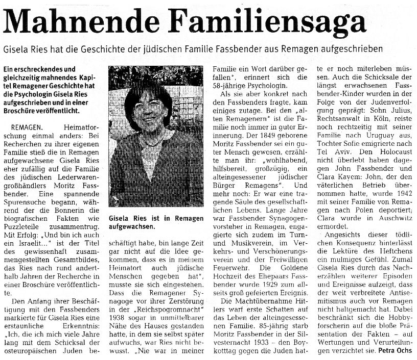 Von den in Remagen geborenen und/oder längere Zeit am Ort wohnhaften jüdischen