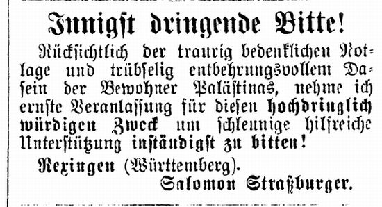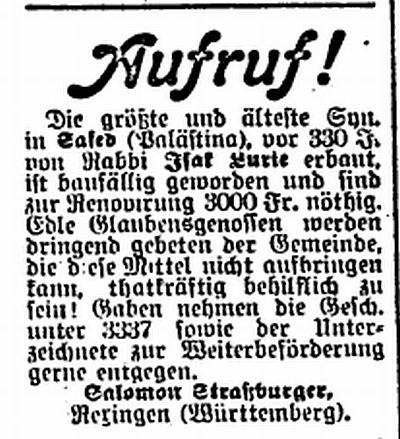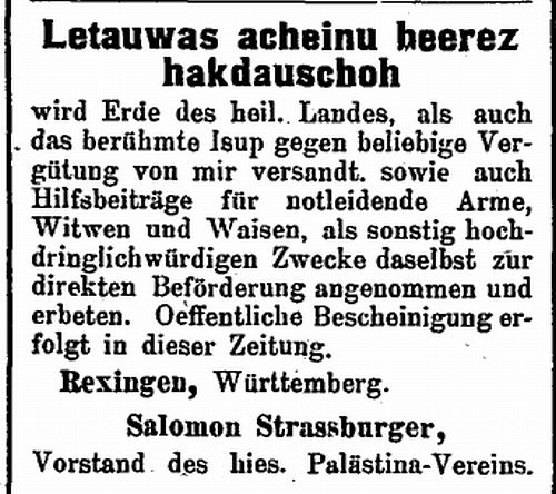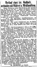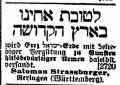 Anzeige in der "Gemeinde-Zeitung für die israelitischen Gemeinden
