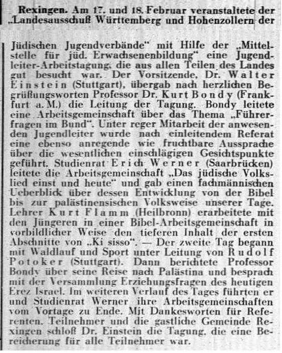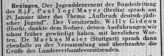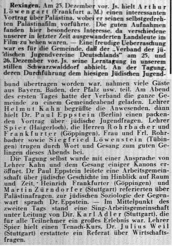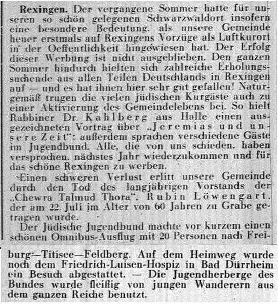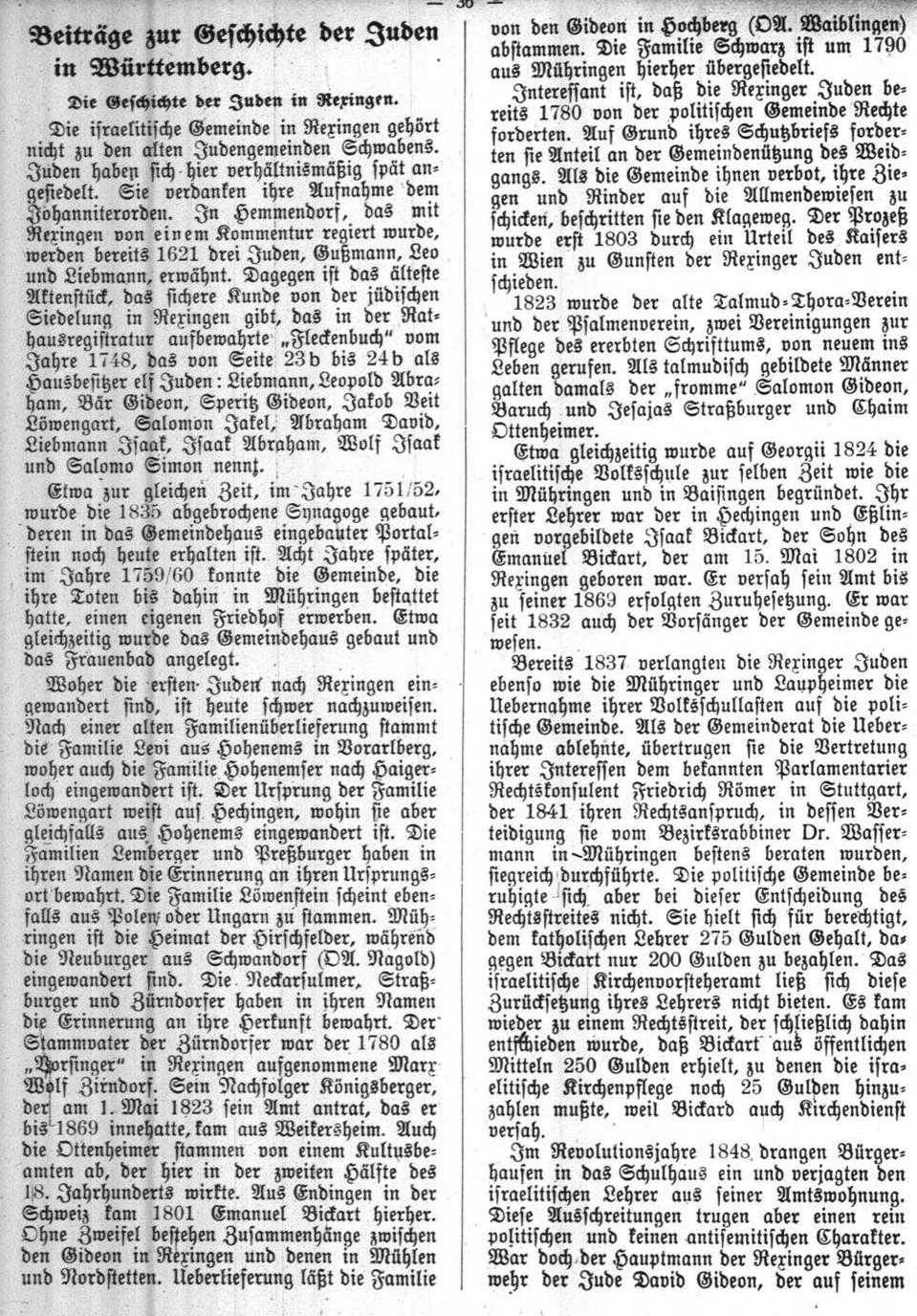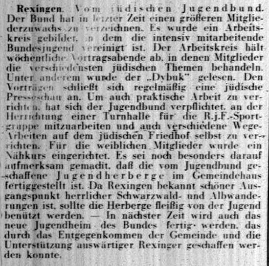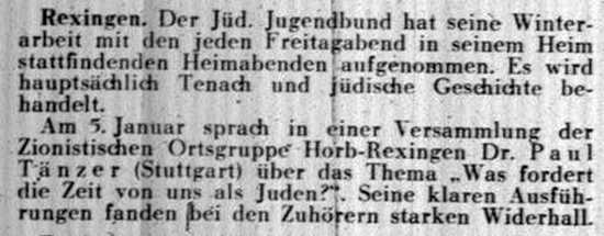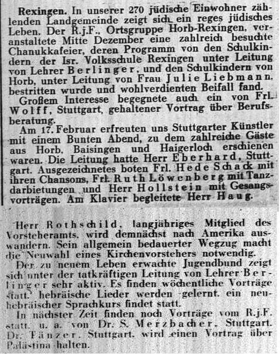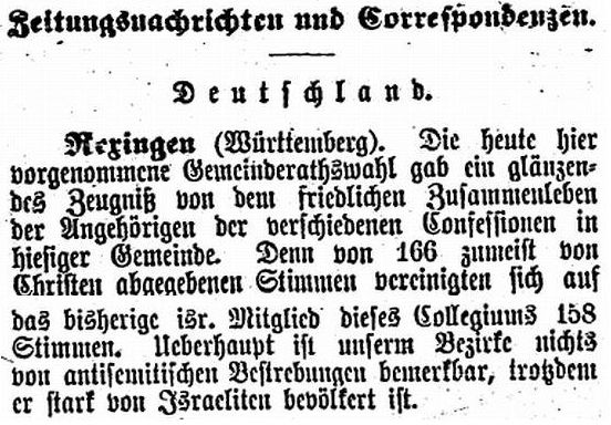 Beiträgen zur jüdischen Geschichte in Rexingen wurden in jüdischen Periodika