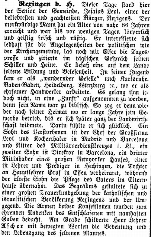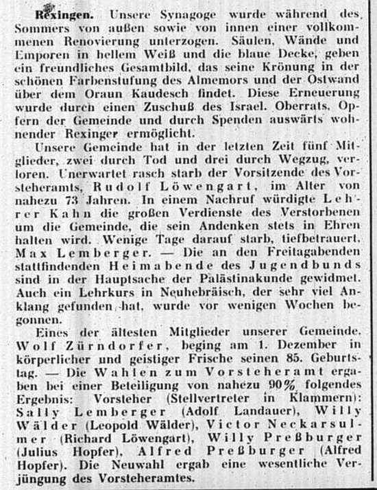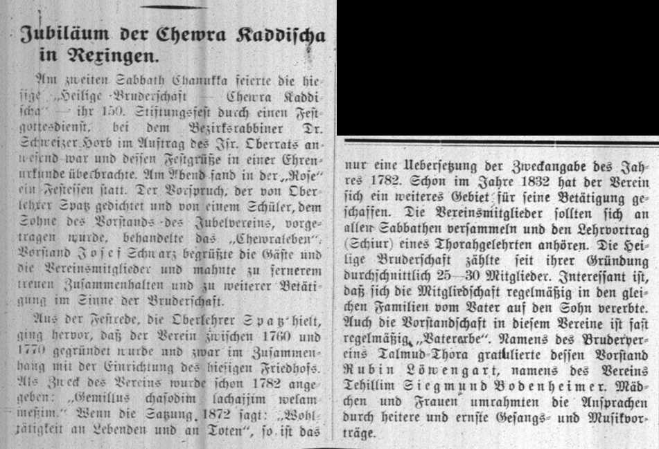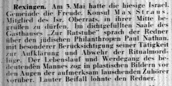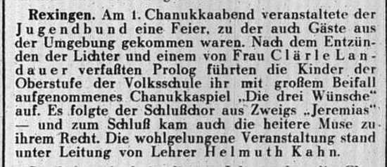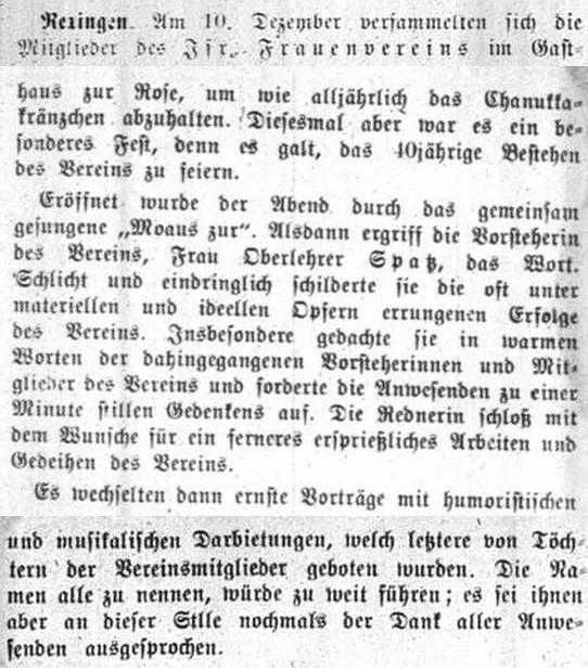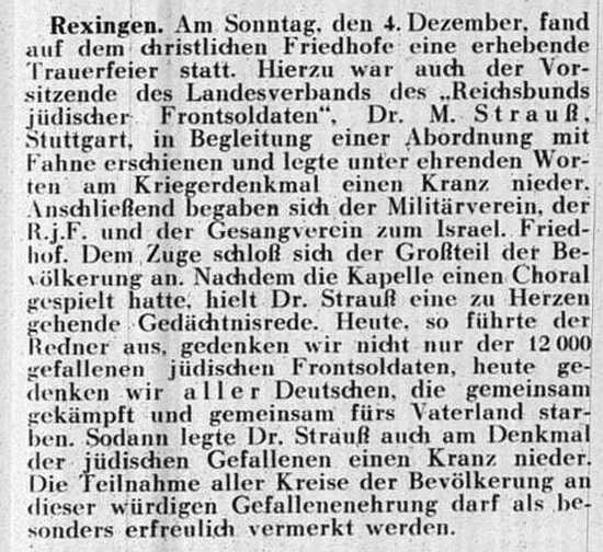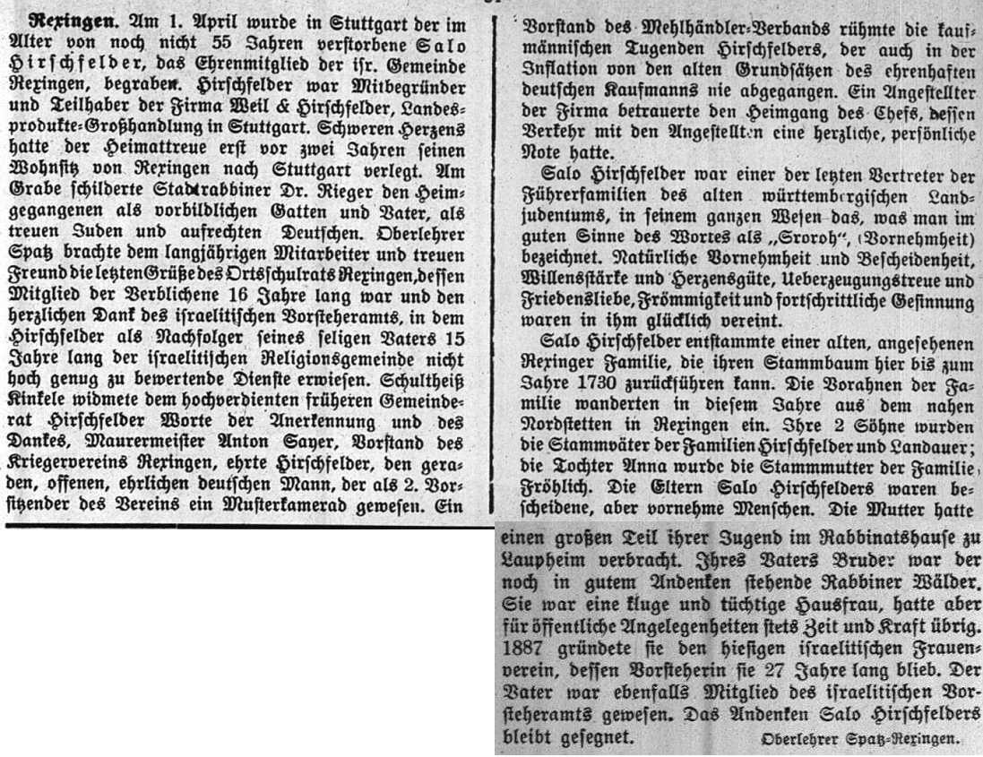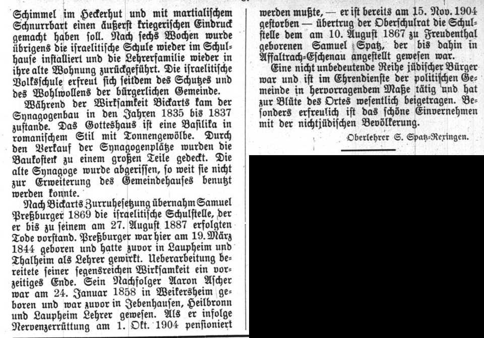 Zur Geschichte der Juden in Rexingen (Beitrag von Oberlehrer Samuel Spatz von