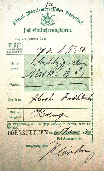 ordentlich quittiert auf der Rückseite der Postanweisung hat Ida Zürndorfer,