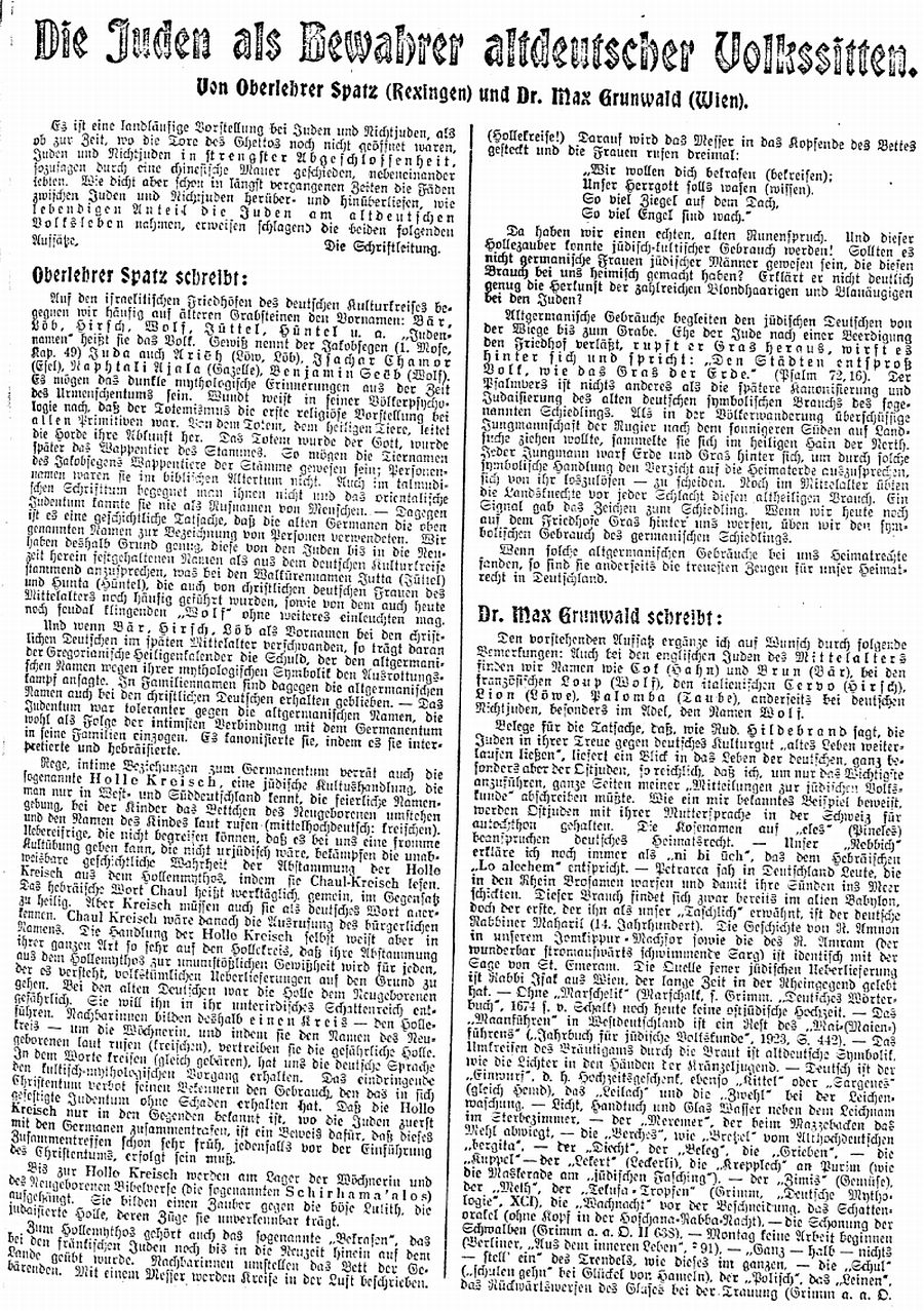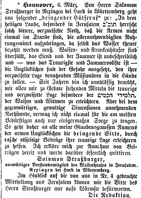 Artikel in der "Gemeinde-Zeitung für die israelitischen Gemeinden