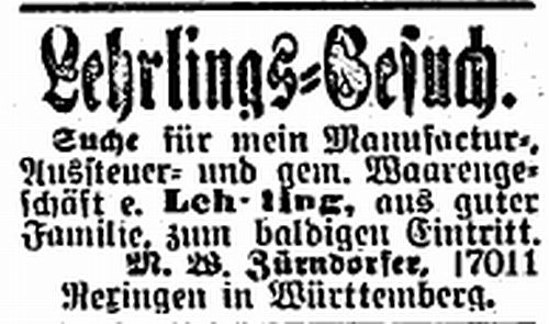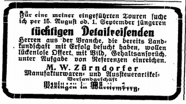 M.W. Zürndorfer, Rexingen (Württemberg)." |