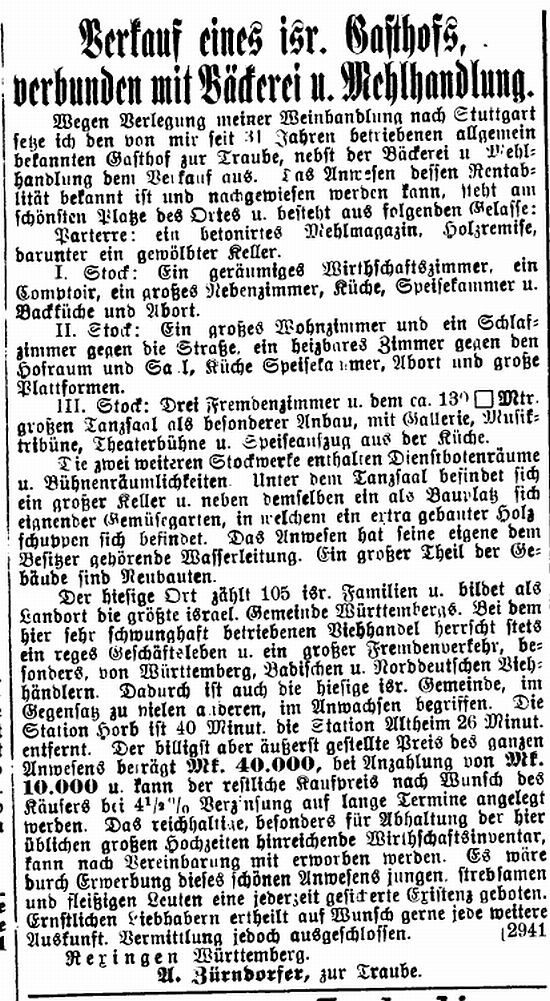 von Rexingen mit Ansicht des Geschäftes von M.W. Zürndorfer und des