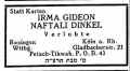 Verlobungsanzeige von Irma Gideon und Naftali Dinkel (1934)