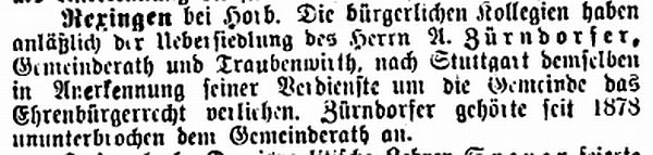Inhaber des Gasthofes A. Zürndorfer war damals Gemeinderat in Rexingen