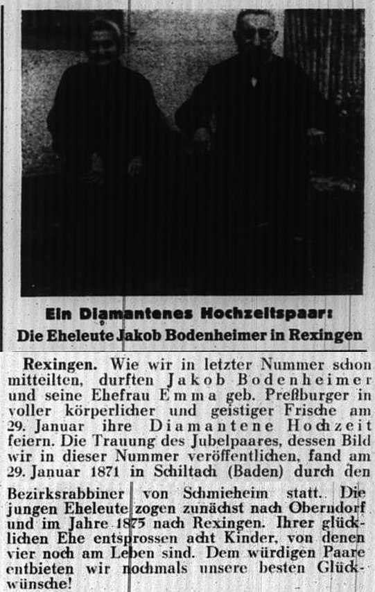 er verheiratet mit Else geb. Lemberger aus Rexingen. Sie war eine