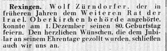 Max Wolf Zürndorfer (geb. 19. Dezember 1836 in Rexingen als Sohn von Wolf