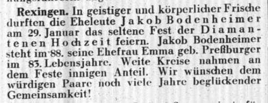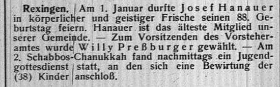Interessant ist, dass die Rexinger Juden bereits 1780 von der politischen