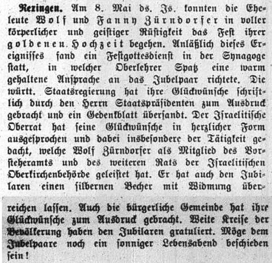 Marx Zürndorfer aus Rexingen und der Karoline Gele geb. Essig aus