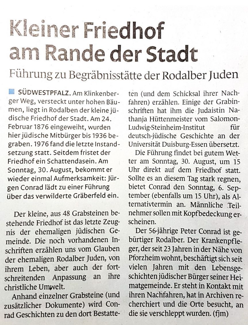 vom 27. August 2020: "Rodalben Führung über jüdischen Friedhof