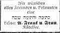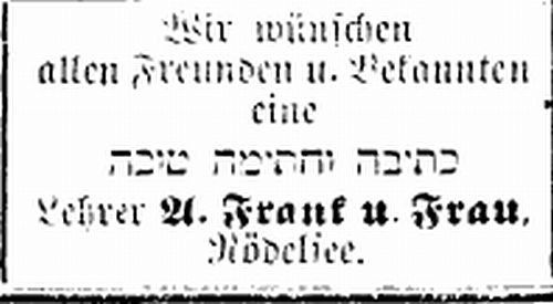 1869 bis zu seiner Zurruhesetzung 1911 war Abraham Frank (geb. 1849