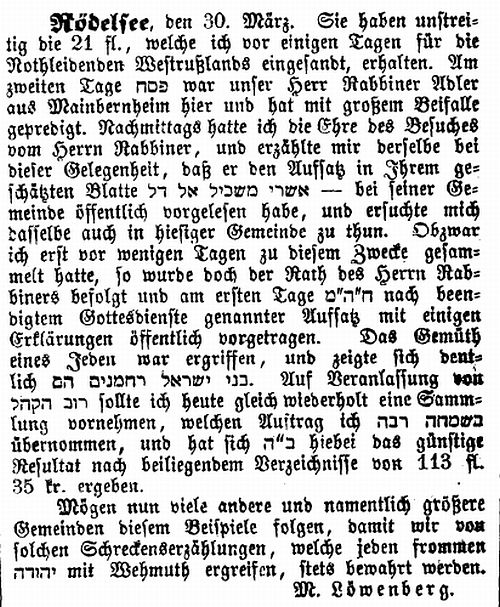 Nr. 5 zu Nr. 65 des 'Israelit', Anmerkung 2 des Herrn Dr. L. Löwenstein),