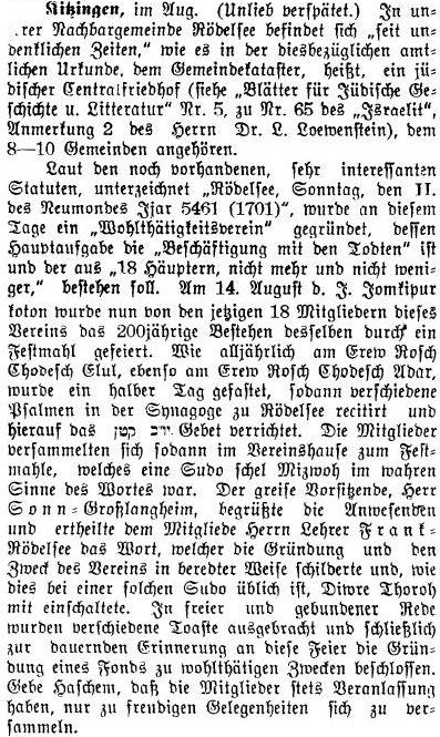 Friedhofs Rödelsee) jährlich in Rödelsee, um am Erew Rosch Chodesch Elul