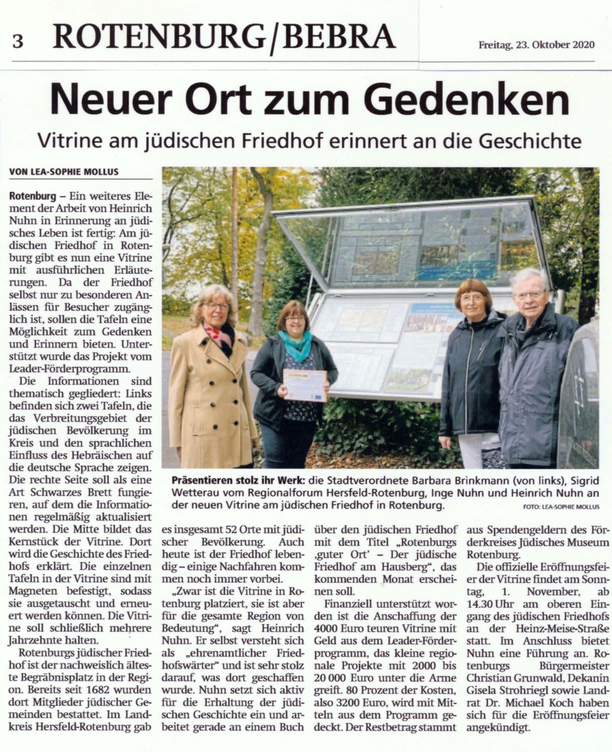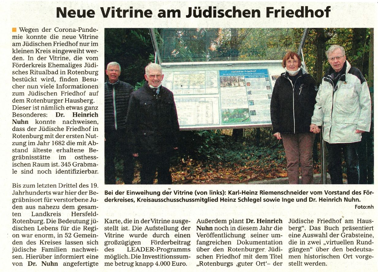 einer großen Vitrine am oberen Eingang zum Jüdischen Friedhof in Rotenburg