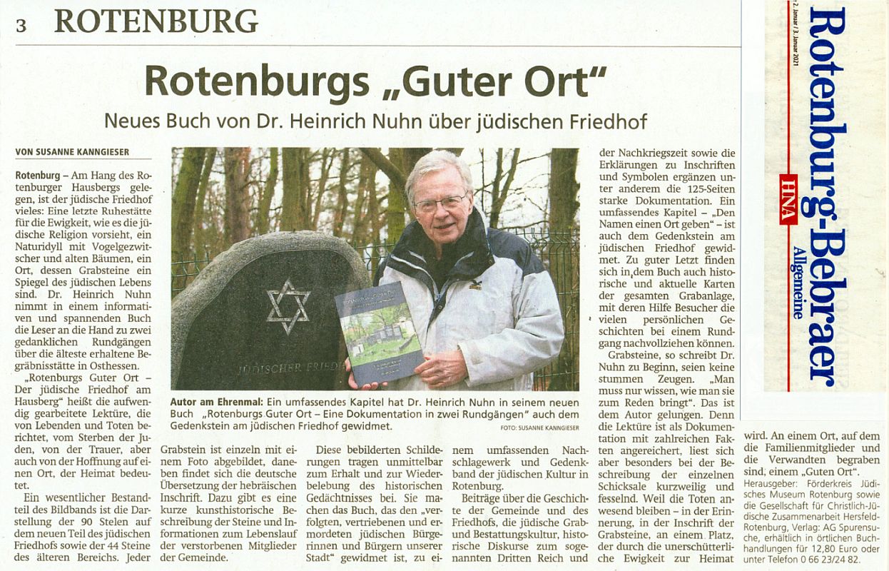 "Rotenburgs 'Guter Ort' Neues Buch von Dr. Heinrich Nuhn über jüdischen