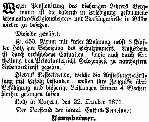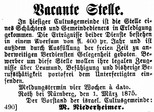 jüdischen Gemeindelebens in Roth war. Wie lange in den 1920er-/1930er-Jahren