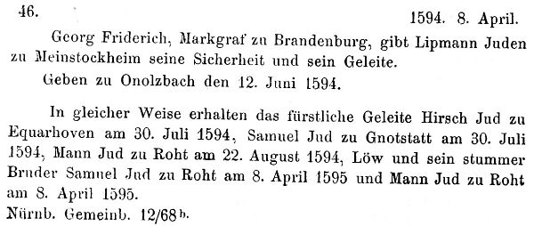 Middle Franconia. Jews are mentioned in 1414 and lived under various letters of