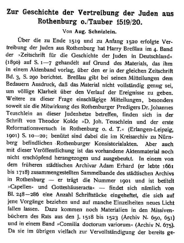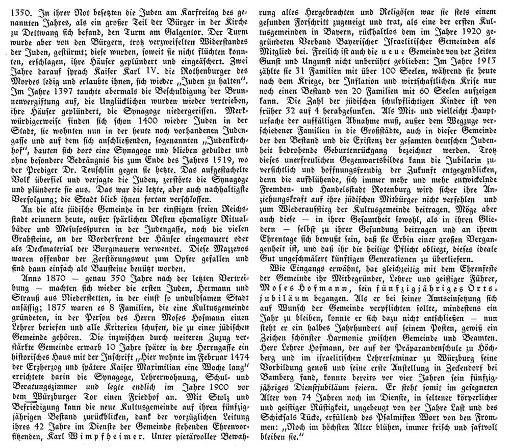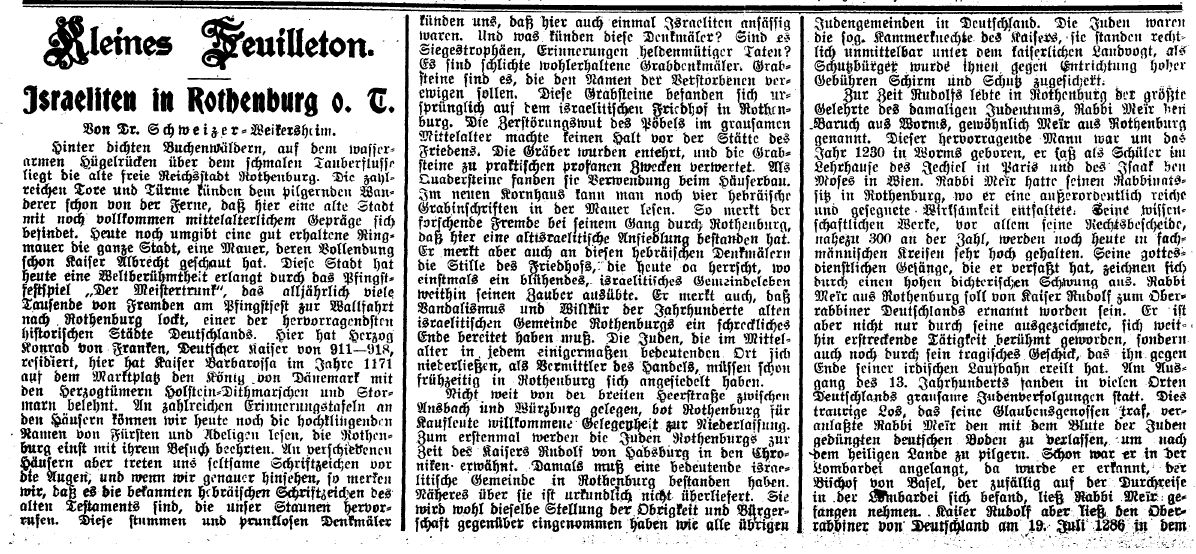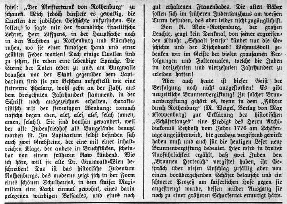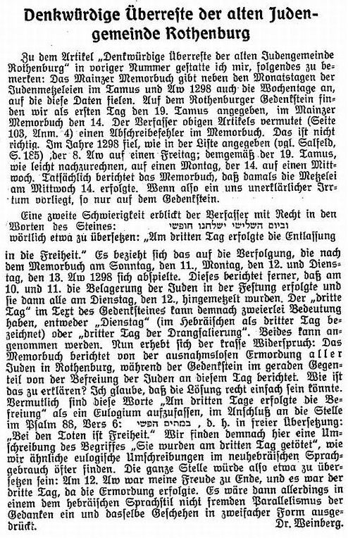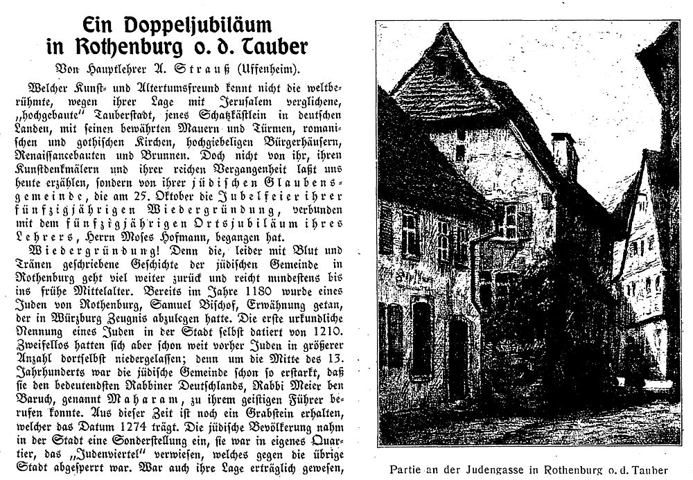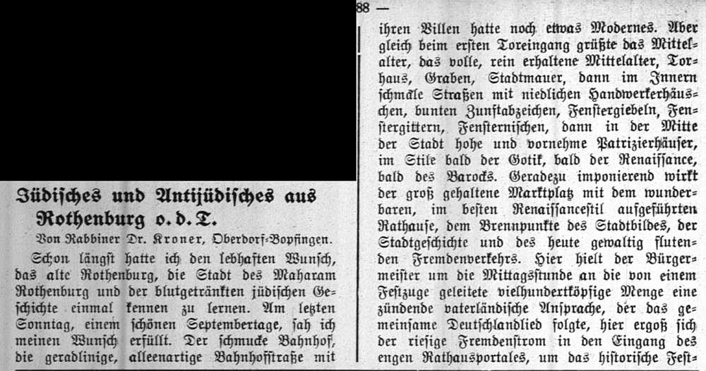 Rothenburg ob der Tauber (Beitrag von Rabbiner Dr. Kroner, Oberdorf, 1927)