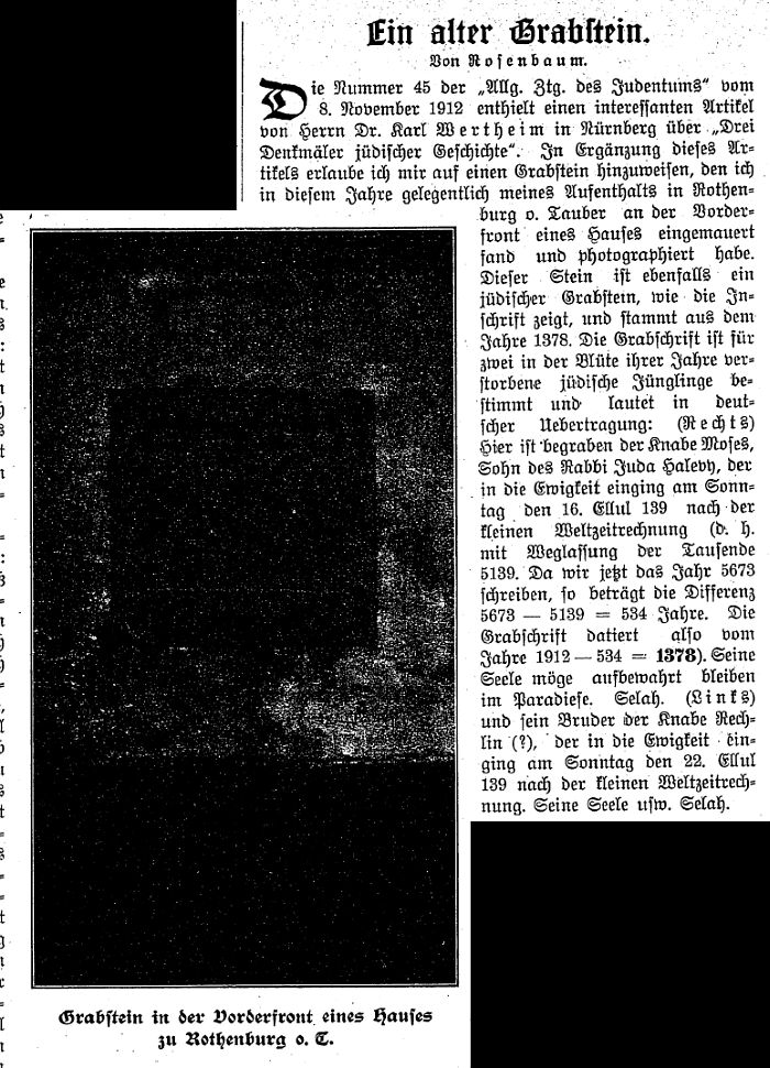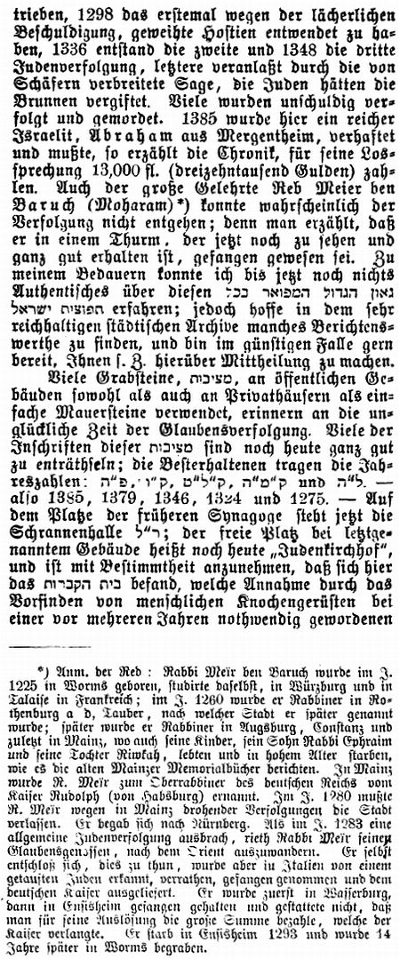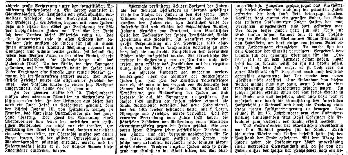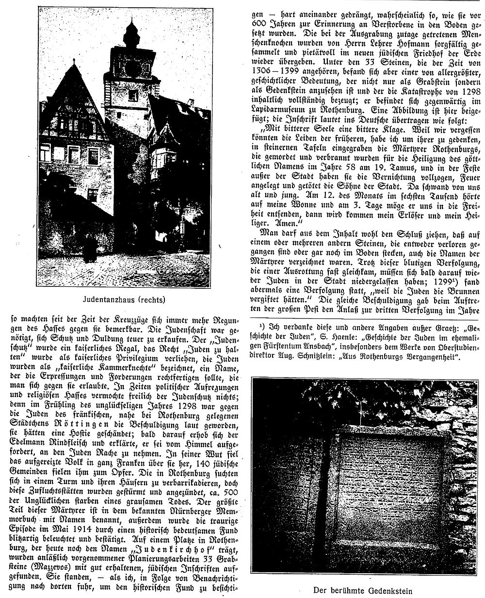 jüdischen Geschichte Rothenburgs wiedergegeben, die in jüdischen Periodika des