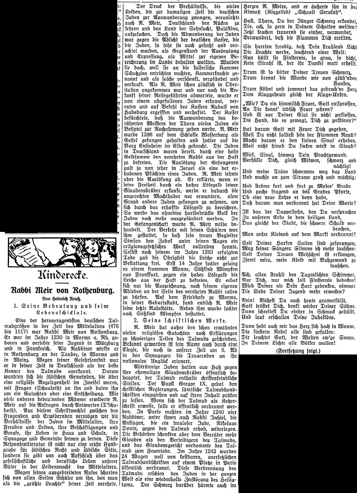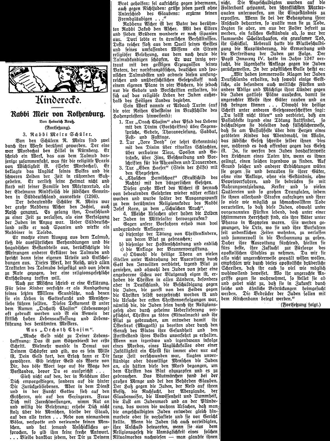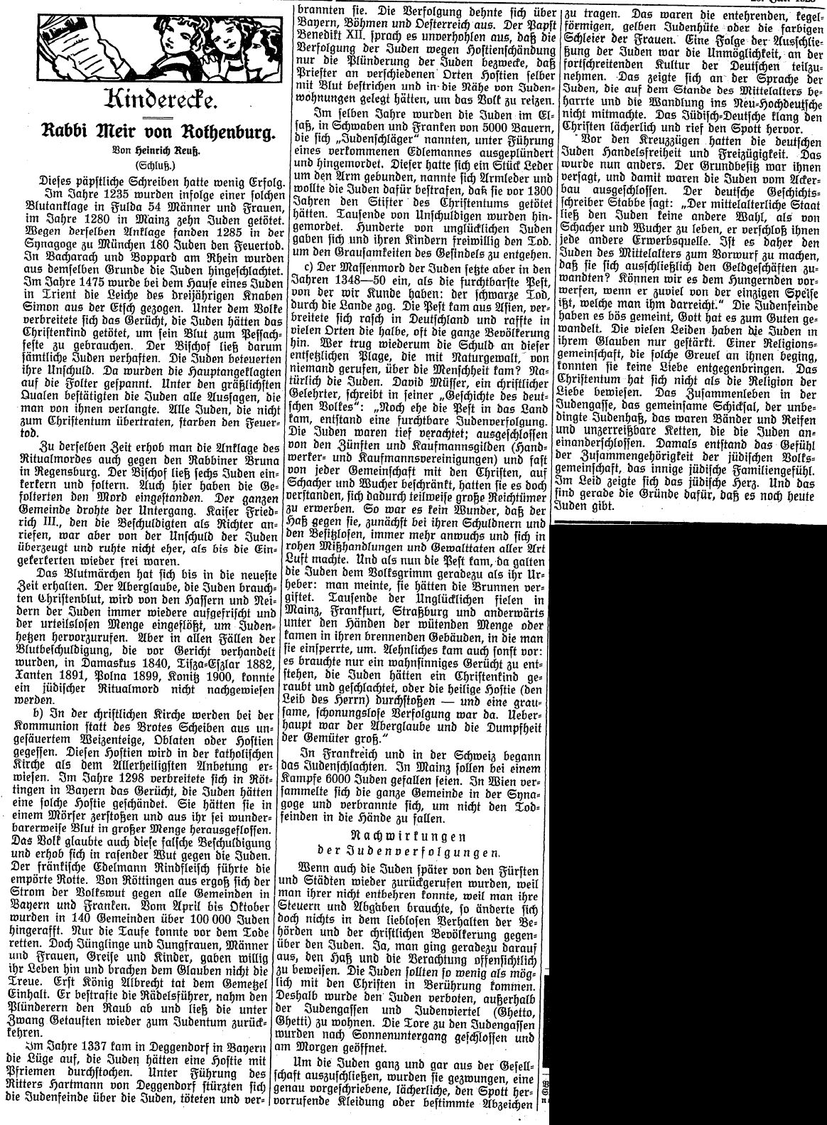 jüdischen Geschichte Rothenburgs wiedergegeben, die in jüdischen Periodika des