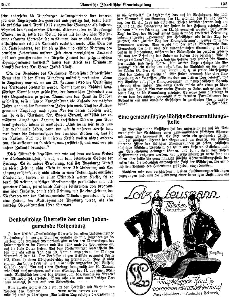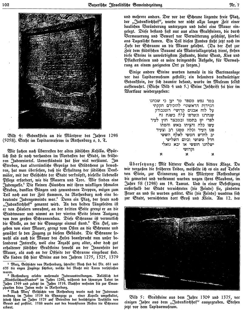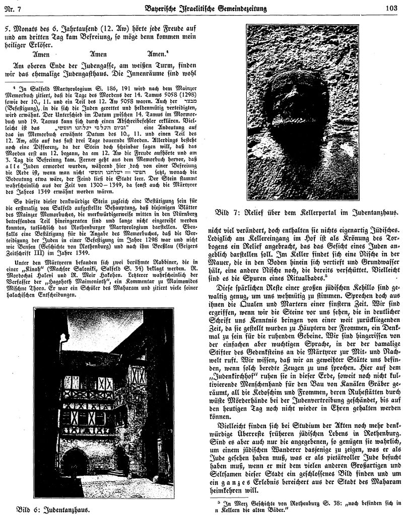 Rothenburg o.d.T. - Artikel in der Bayerischen Israelitischen